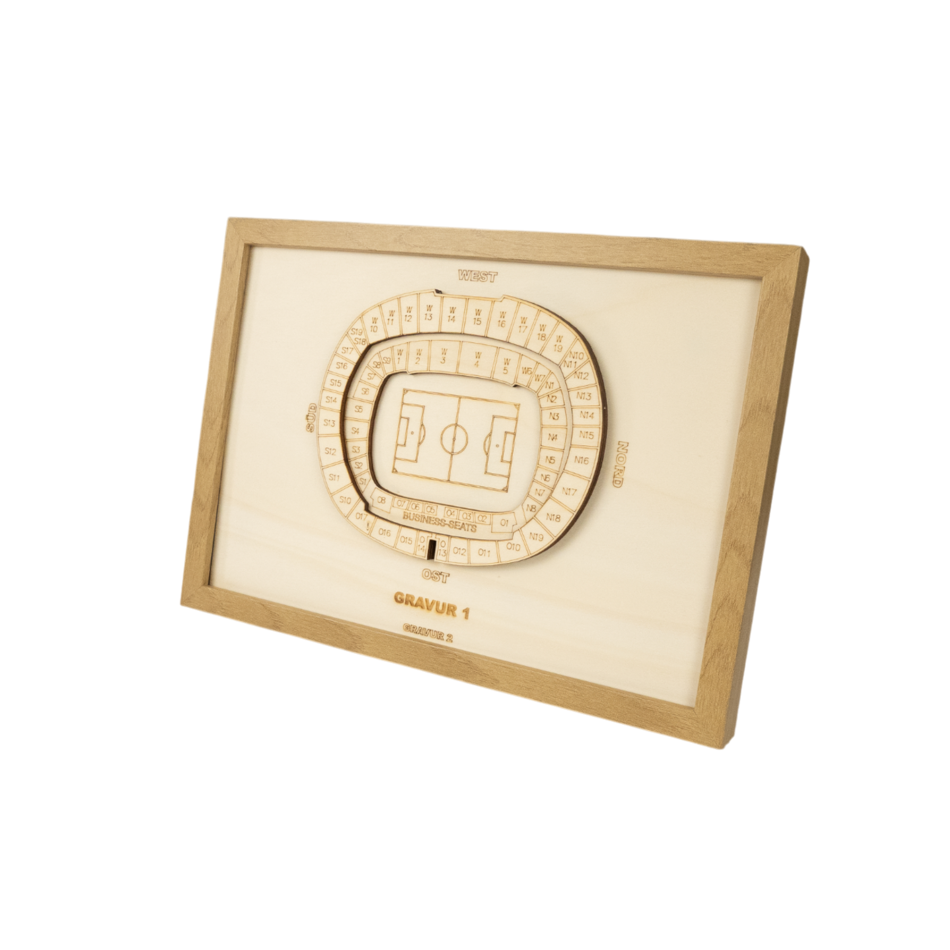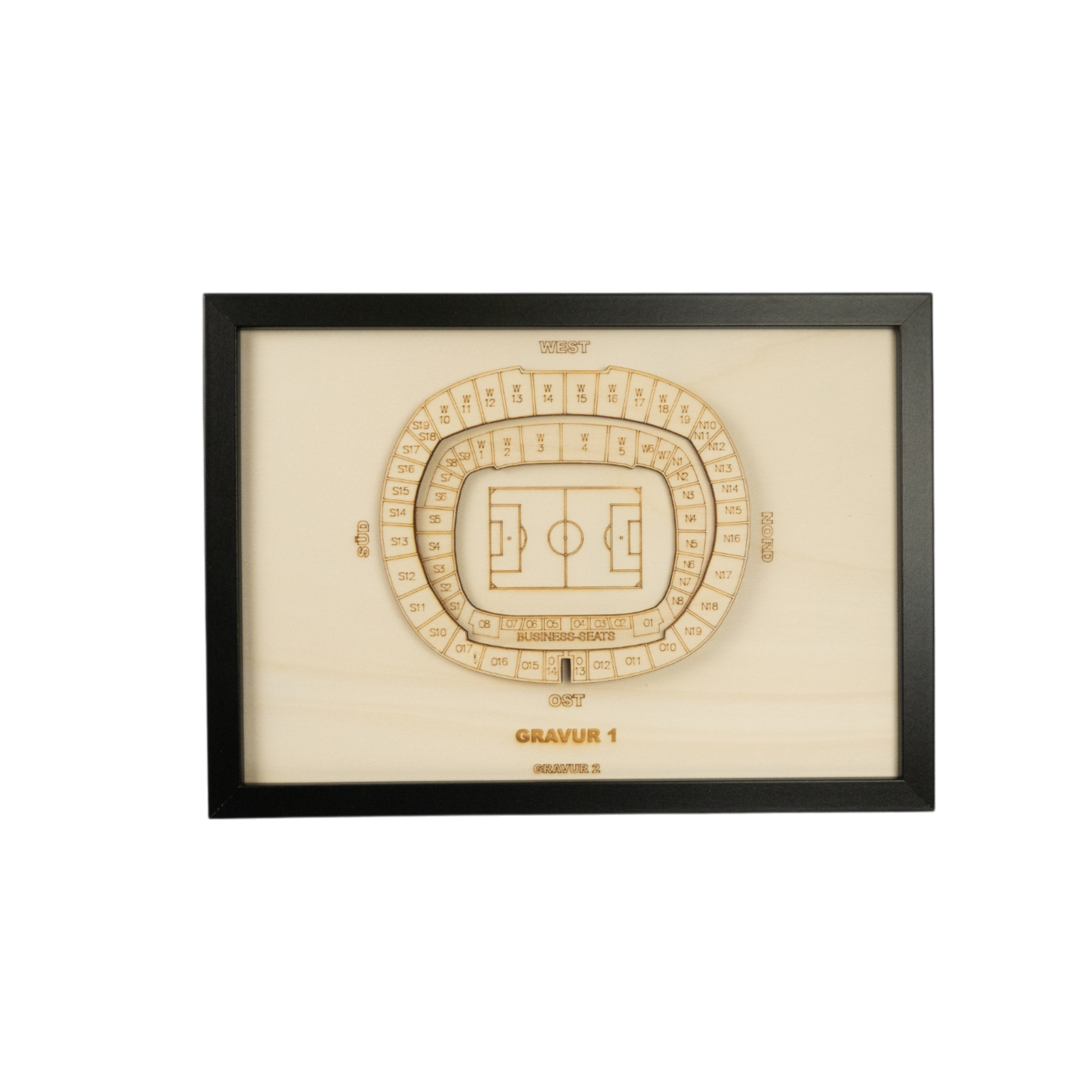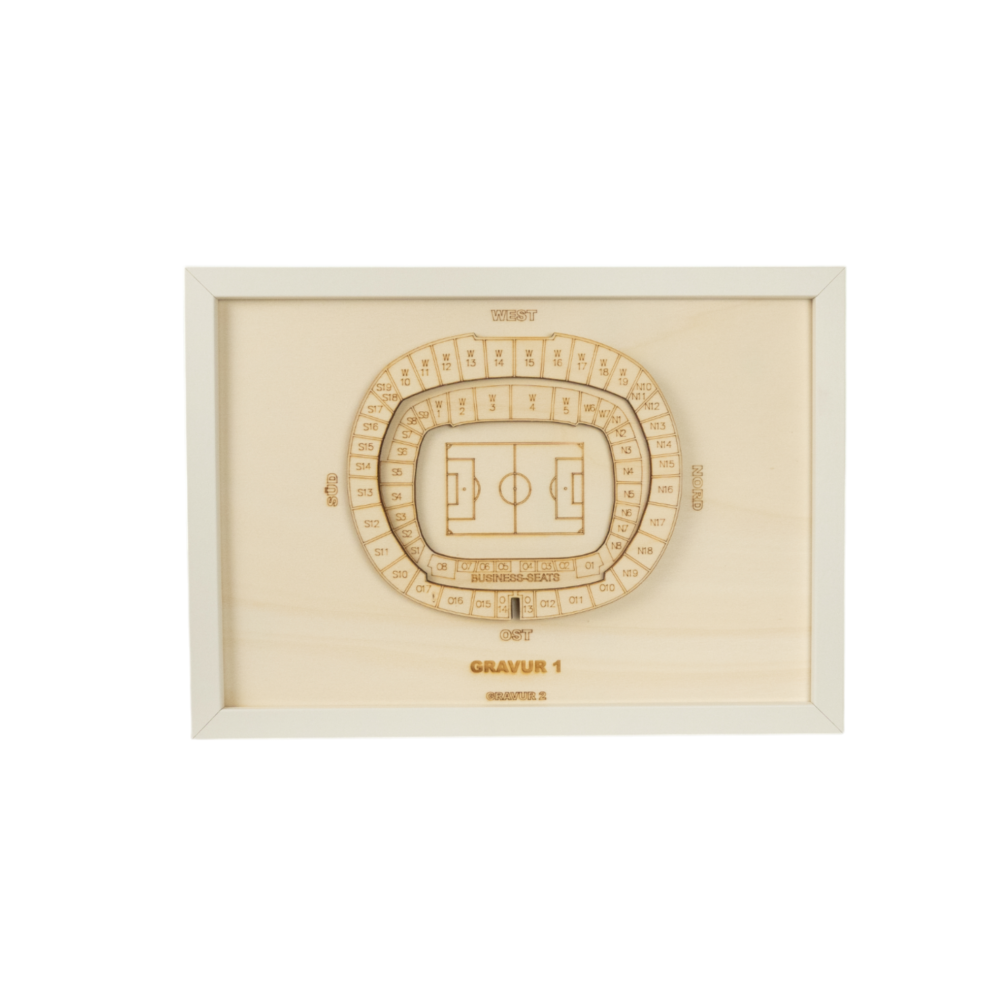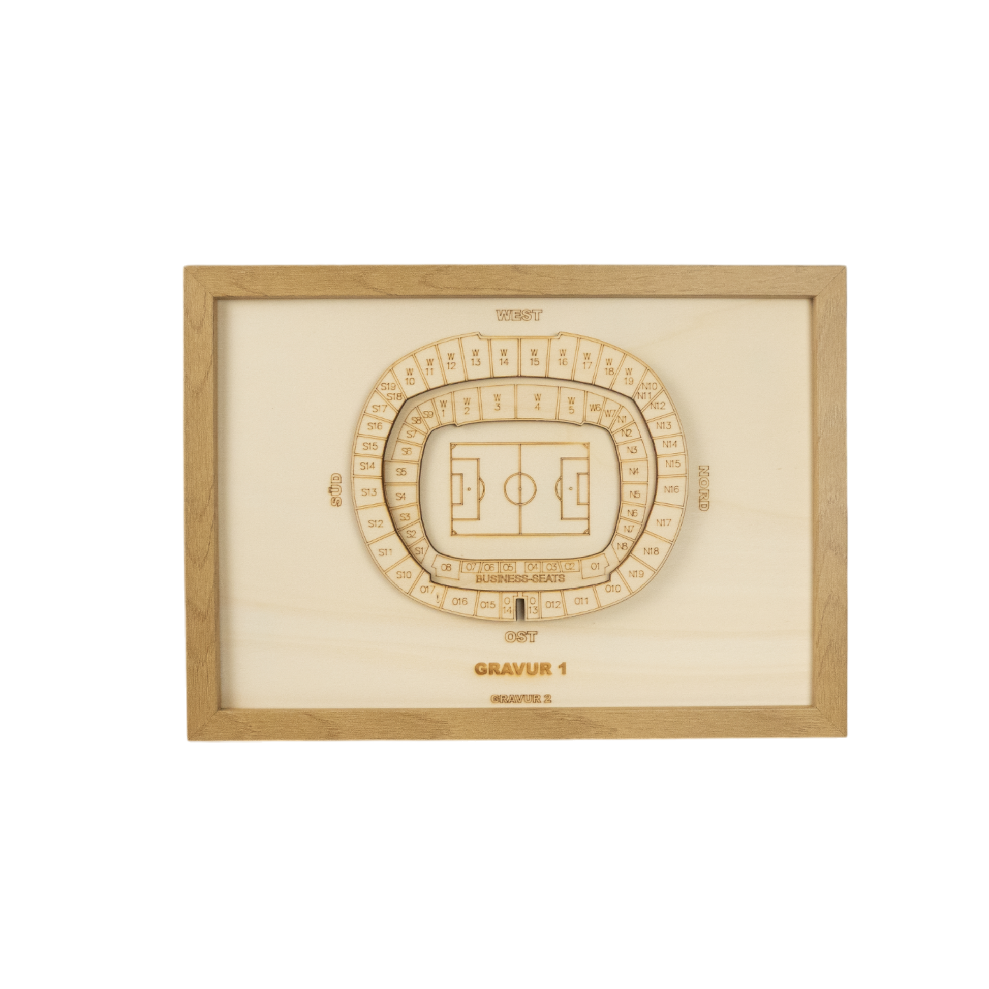 Anstelle von "Gravur 1" und "Gravur 2" kannst du dir gerne eigene Sätze, Namen oder Fakten ausdenken, wie z.B. einen Vereinsnamen, die Kapazität deines Stadions oder einen Fangesang.