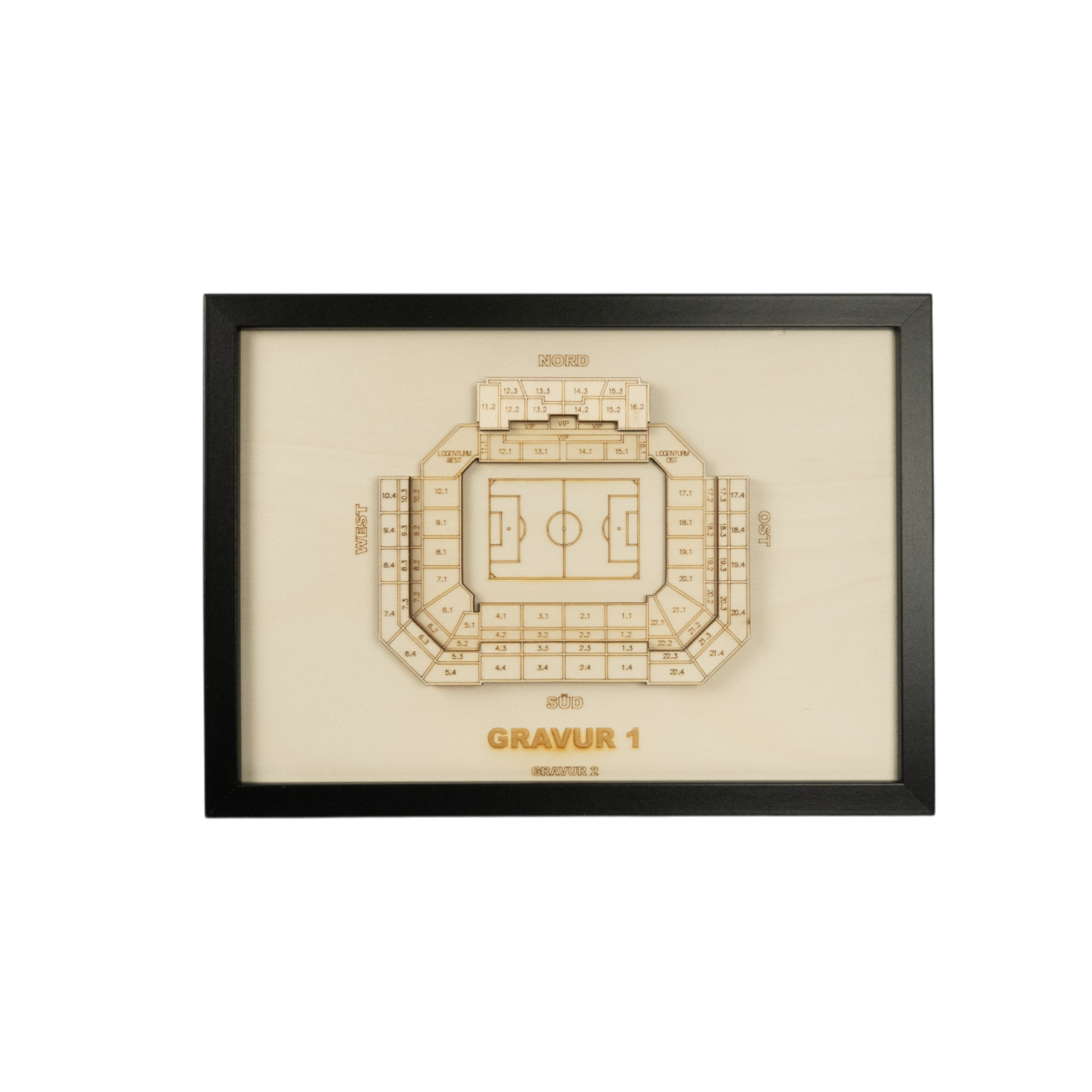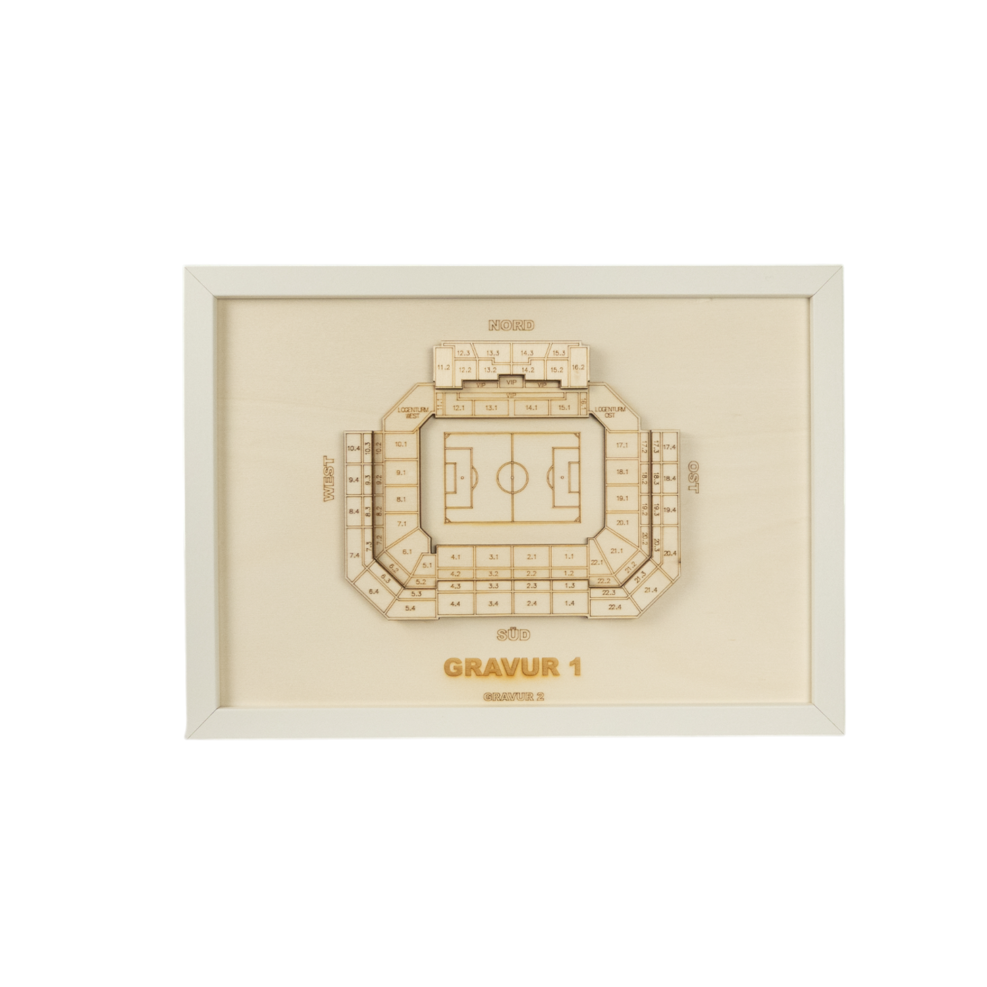 Anstelle von "Gravur 1" und "Gravur 2" kannst du dir gerne eigene Sätze, Namen oder Fakten ausdenken, wie z.B. einen Vereinsnamen, die Kapazität deines Stadions oder einen Fangesang.