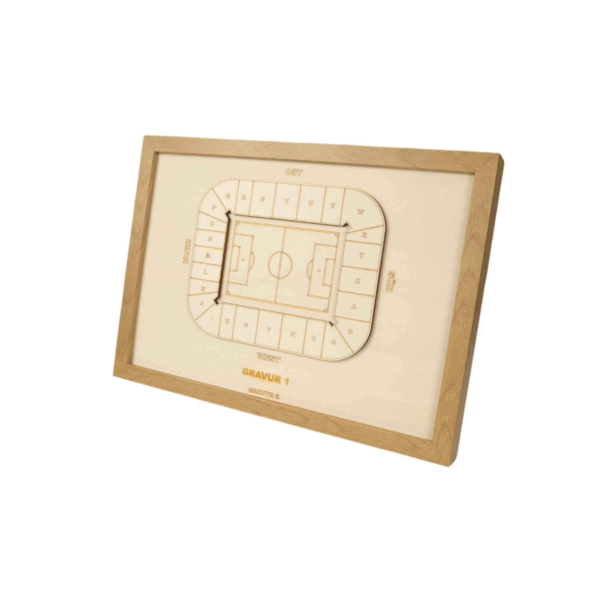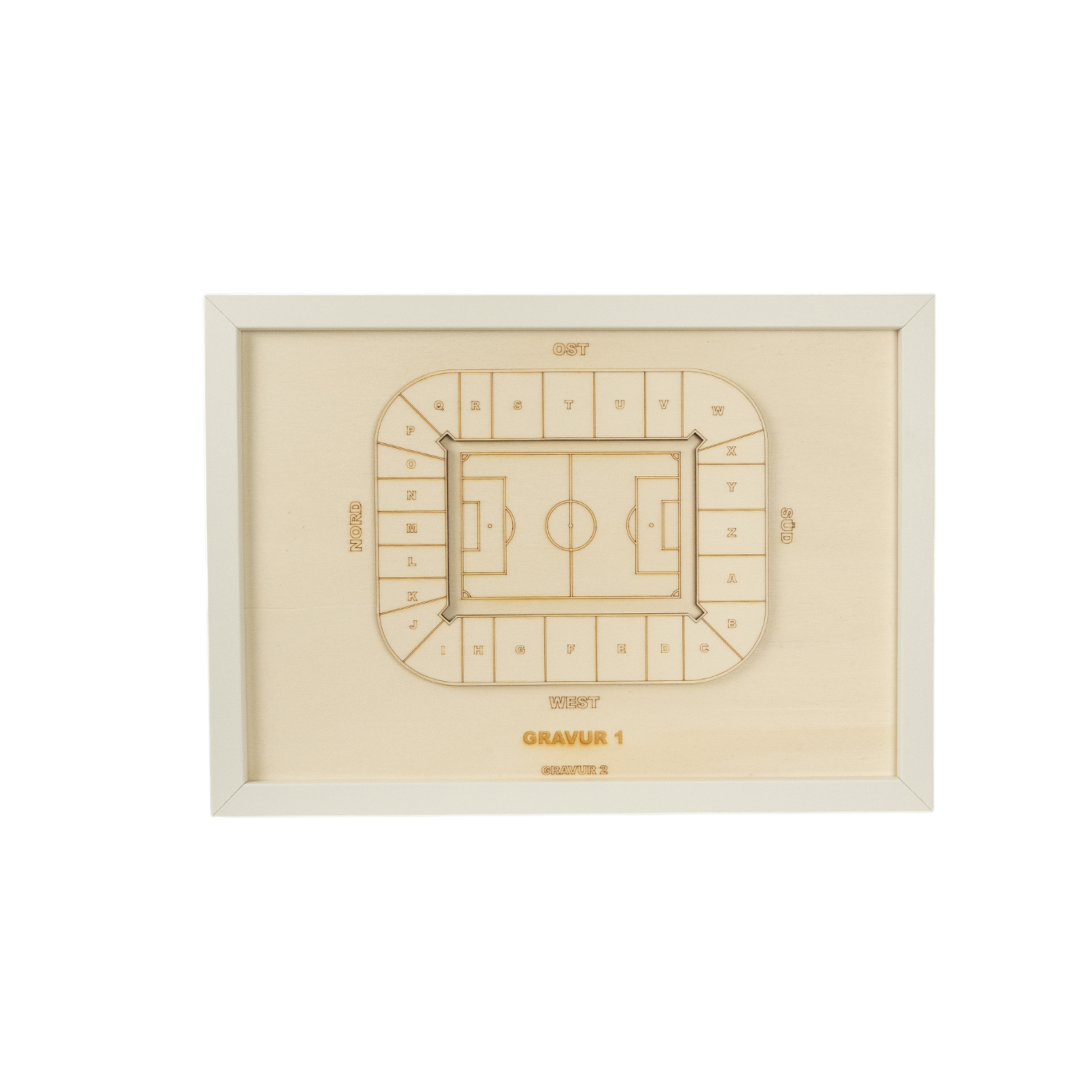 Anstelle von "Gravur 1" und "Gravur 2" kannst du dir gerne eigene Sätze, Namen oder Fakten ausdenken, wie z.B. einen Vereinsnamen, die Kapazität deines Stadions oder einen Fangesang.